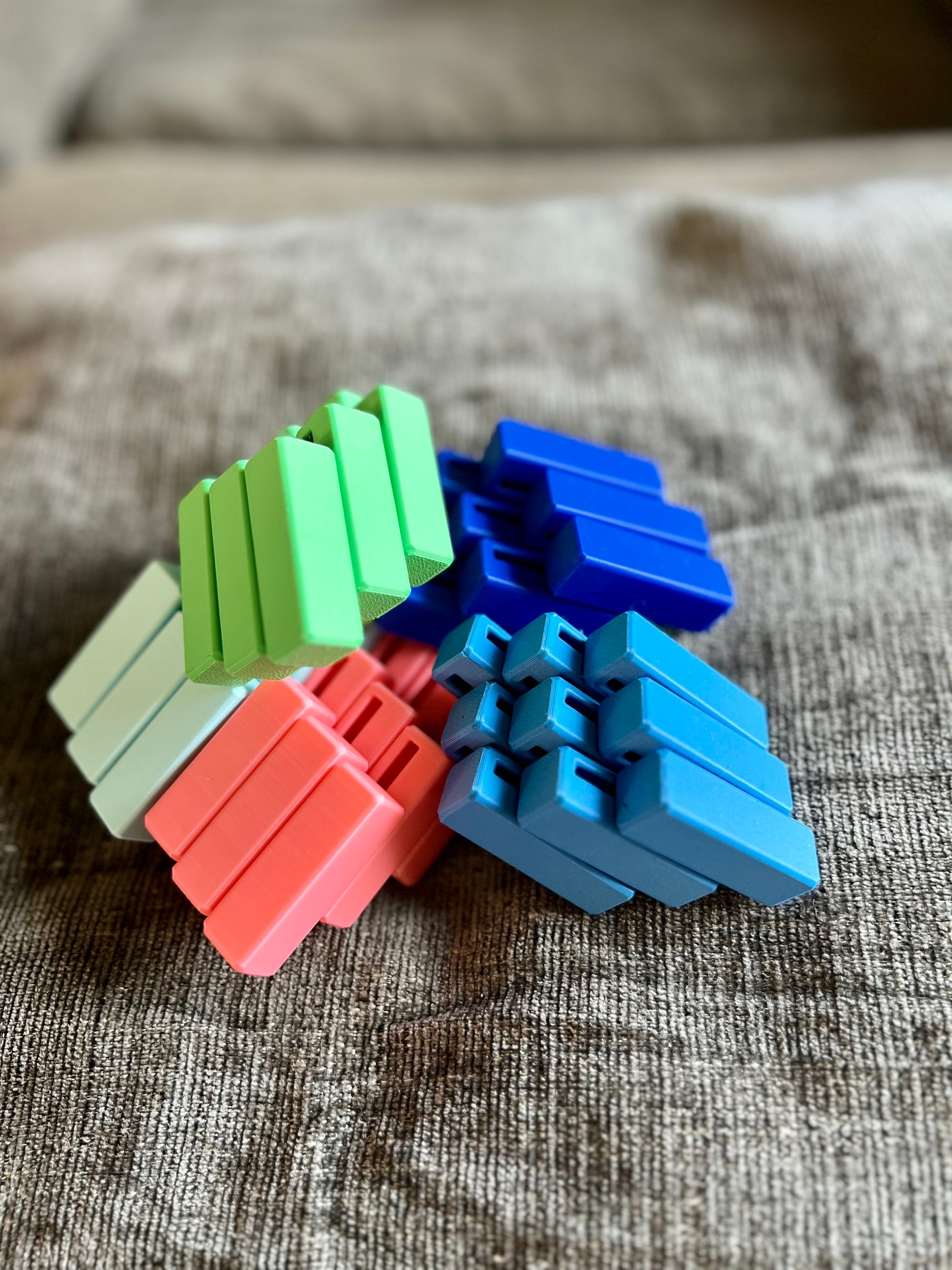 Remember how it used to feel to thumb across the ridges on your corduroy pants? This fidget brings that back. Or you might find it a lovely wonderful grittiness, like two pieces of sandpaper rubbing together. Or simply like to watch the cascading of the bricks falling back and forth. The sound is also exquisite and harsh, you won't be allowed around most people when you've got the wiggles in you